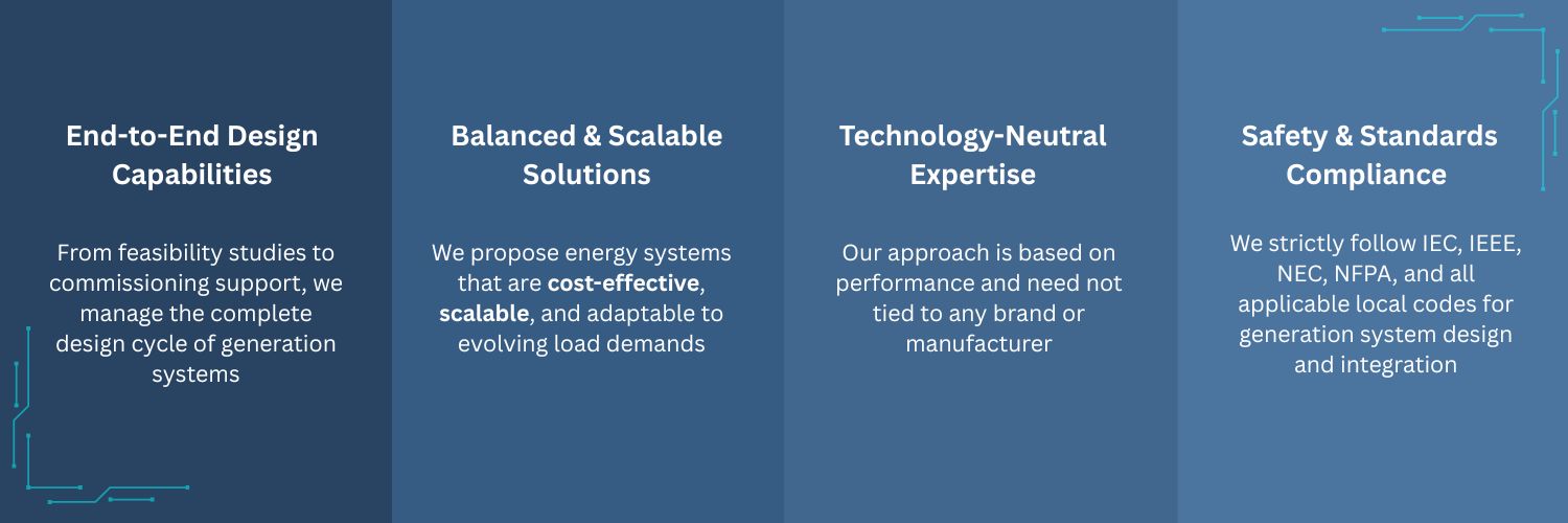 At DNCBOT, we deliver comprehensive power generation consulting and design services that meet the energy demands of today’s complex projects. From on-grid to off-grid systems, traditional generators to hybrid solutions, our role is to engineer systems that are reliable, efficient, scalable, and fully compliant with regulatory standards.